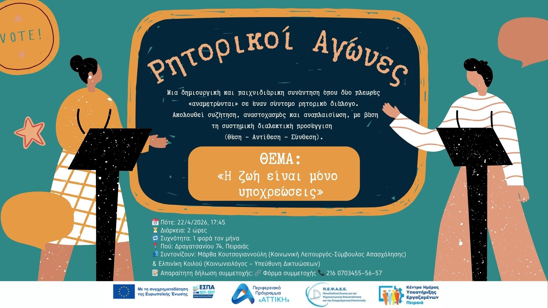 Το Κέντρο Ημέρας Υποστήριξης Εργαζομένων Πειραιά πραγματοποιεί μηνιαίο βιωματικό εργαστήριο με έμπνευση τους… ρητορικούς αγώνες!